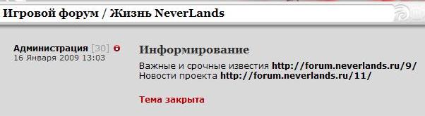 Администрация сообщает! И так первые официальные сообщения от Администрации: Подробнее можете узнать тут: http://forum.neverlands.ru/9/1/59864/1/ - Банк Форпоста. http://forum.neverlands.ru/11/1/59863/1/ - Форум: Новые аватары. Просмотров: 425 | Дата: 16.01.2009 | Рейтинг: 0.0/0 | Комментарии (1)